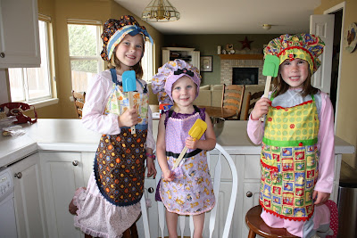 The fun aprons and bakers hats were handmade gifts from their aunt. Absolutely darling and tons of fun for the girls to dress the part.