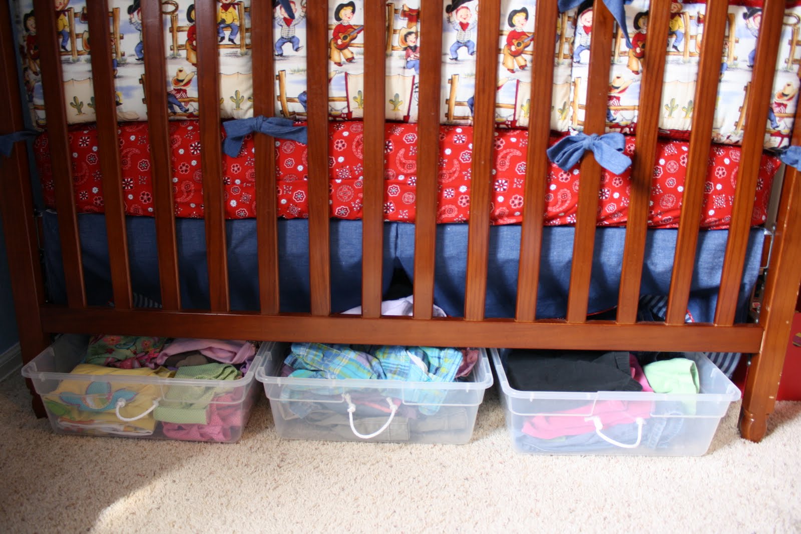 First I measured the distance from the floor to the bottom of the bed. I then went to Target and found bins that would easily slide in and out from under the bed.